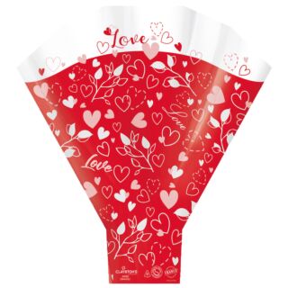 Découvrez le cône en forme de Y en polypropylène Cupidon, une solution haut de gamme pour emballer de grands bouquets et compositions florales. Ce cône à motifs de coeurs est conçu pour simplifier l'emballage floral tout en offrant une présentation élégante pour les fleurs.