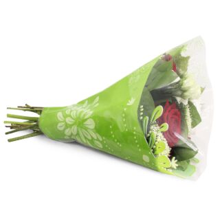 Découvrez le cône en forme de Y en polypropylène Ninon, une solution premium pour emballer de grands bouquets et compositions florales. Ce cône à motifs fleuris est conçu pour simplifier l'emballage floral tout en offrant une présentation élégante pour les fleurs.