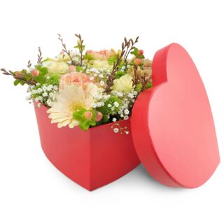 The Pandore Heart-Shaped Box is the ultimate romantic packaging solution, specially designed for Valentine's Day floral presentations. Crafted from sturdy cardboard and water-resistant materials, it features a hidden thermoformed mold that reveals a beautiful surprise of flowers and fragrance when opened. With its sleek plain red finish and elegant grosgrain ribbon, this heart-shaped box turns every bouquet into a cherished moment.