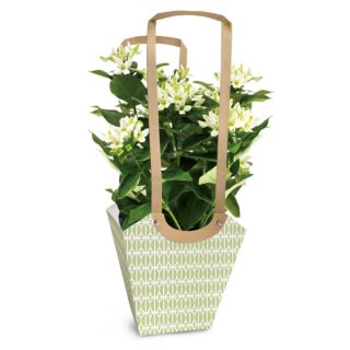 The Aqua Muguet Water-Resistant Cardboard Bag is designed to protect and carry potted plants while adding a modern touch to floral displays. Its water-resistant features and minimalist design make it perfect for any occasion.