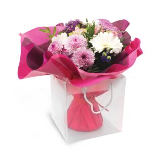 Choisissez le Sac transparent en polypropylène 130 pour une manière simple, moderne et efficace de mettre en valeur fleurs et plantes. Commandez dès maintenant et améliorez vos présentations florales.